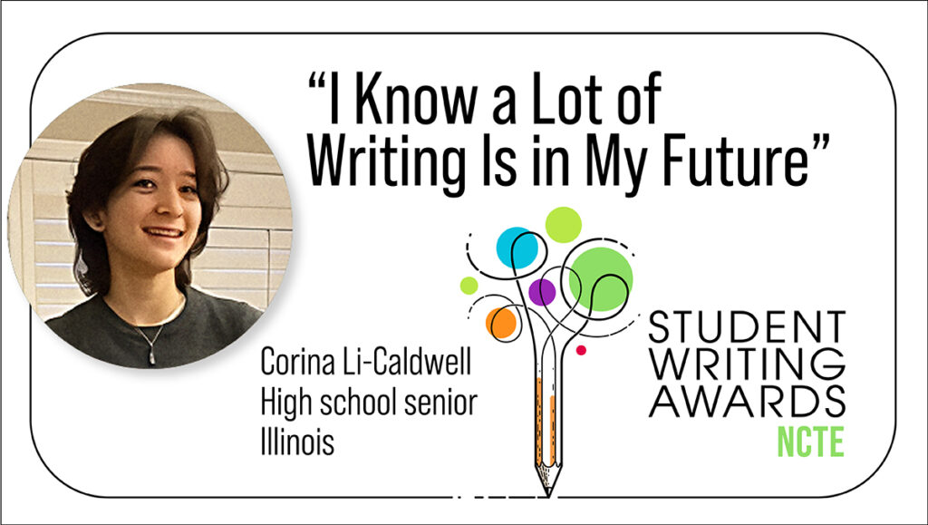 NCTE is highlighting the achievements and education experiences of these students in a blog post series. This post features the writings and reflections of Corina Li-Caldwell, a senior at Evanston Township High School in Illinois.
