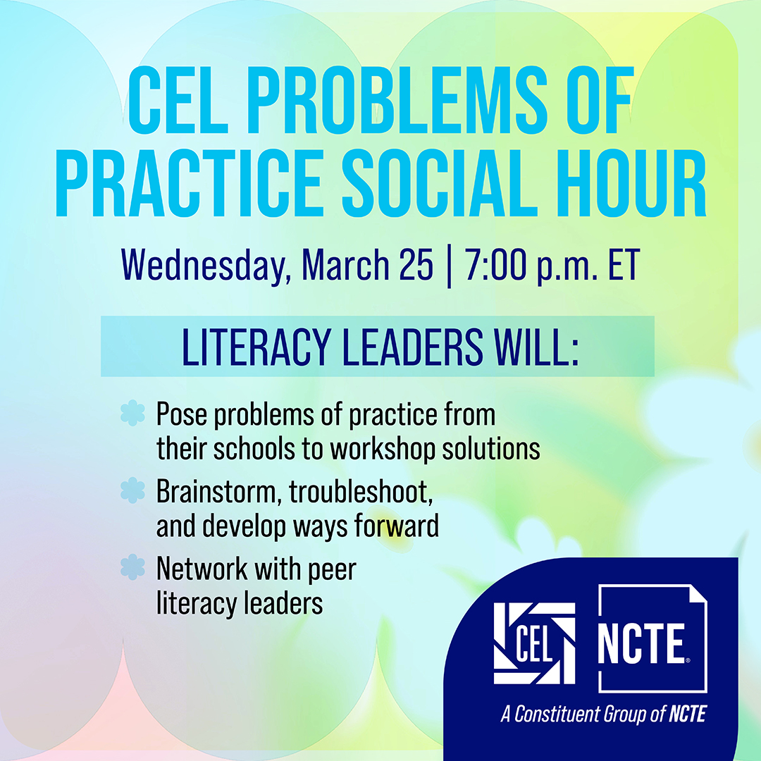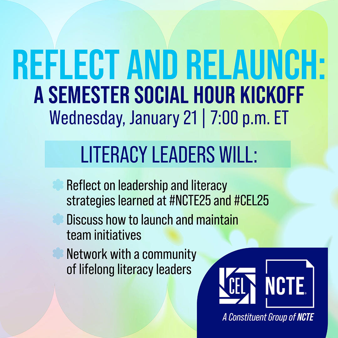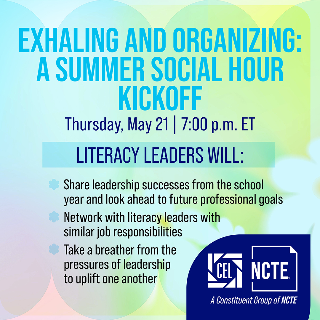 Throughout the year CEL offers a variety of online programs and social hours for literacy leaders that are focused specifically on interpersonal, departmental, and organizational/systemic leadership. All events are free and open to NCTE and CEL members.